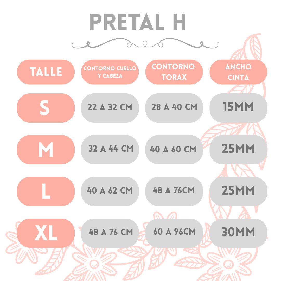 El pretal H es una excelente opcion para nuestras mascotas. Esta hecho en cinta de polipropileno de 25mm. Todos los herrajes son metalicos y soldados para mayor seguridad. La hebilla es de acetato, siendo mucho mas segura y duradera que la plastica.